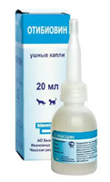 Лечение острых бактериальных и дрожжевых ушных инфекций (главным образом otitis externa), поверхностных дерматитов, экзем ушных раковин и слухового прохода у собак и котов.СОСТАВ:триамцинолона ацетонид — 0,5 мг; кислота салициловая – 5 мг; гентамицина сульфат – 2 мг.СПОСОБ ПРИМЕНЕНИЯ:При лечении острого дерматита бактериальной и грибковой этиологии пораженные участки ушной раковины, слухового прохода очистить от ушной серы, корок и экссудата и закапать в каждое ухо по 4-5 капель Отибиовина – в начале курса 3-4 раза в день, а через 3 дня 2-3 раза в день. Осторожно провести массаж основания уха для лучшего проникновения препарата в ткани.