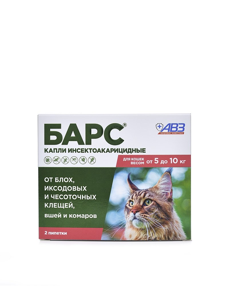 Барс капли против блох и клещей д/кошек от 5 до 10 кг (2 пип. по 0,5мл)