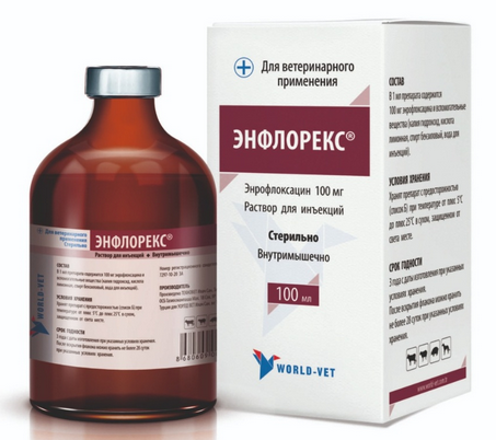 СОСТАВ: Энрофлоксацин 100 мг. ПРИМЕНЕНИЕ: крупному рогатому скоту, овцам, свиньям и собакам при патологии дыхательных путей, желудочно-кишечного тракта, мочеполовой системы, инфекций кожи и мягких тканей, а также при вторичных инфекциях, вызванных чувствительными к энрофлоксацину микроорганизмами (колибактериоз, сальмонеллез, пастереллез, лептоспироз и др.).
