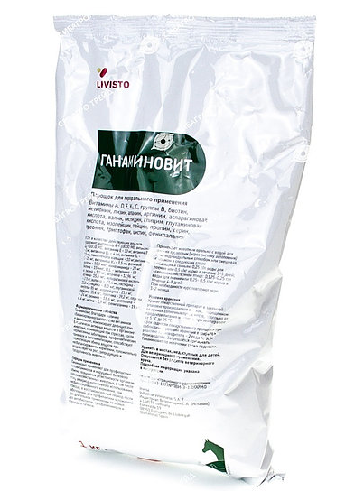 Комплекс витаминов и аминокислот в 1 грамме которого содержится: витамина А — 10000 МЕ; витамина Д3 — 1000 МЕ; витамина Е — 10 мг; витамина В1 — 2 мг; витамина В2 — 4 мг; витамина В6 — 1,5 мг; пантотената кальция — 10 мг; витамина С — 25 мг; витамина К3 — 1,5 мг; фолиевой кислоты — 500 мкг; никотинамида — 20 мг; биотина — 15 мкг; D,L-метионина — 50 мг; L-лизина — 50 мг; аланина — 12,96 мг; аргинина — 15,6 мг; аспартовой кислоты — 27,8 мг; валина — 27,4 мг; гистидина — 11,8 мг; глицина — 8 мг; глутаминовой кислоты — 85 мг; изолейцина — 23,6 мг; лейцина — 35,4 мг; пролина — 39,2 мг; серина — 24 мг; L-треонина — 18,6 мг; L-триптофана — 6,4 мг; цистина — 1,9 мг; фенилаланина — 19 мг, наполнитель до 1 г. ПРИМЕНЕНИЕ: При витаминной и аминокислотной недостаточности у сельскохозяйственных животных и птицы, вызванной несбалансированным кормлением, при стрессах, ослабленном состоянии, для восстановления и поддержки тонуса после вакцинации, а также после продолжительного лечения антибиотиками и кокцидиостатиками.
