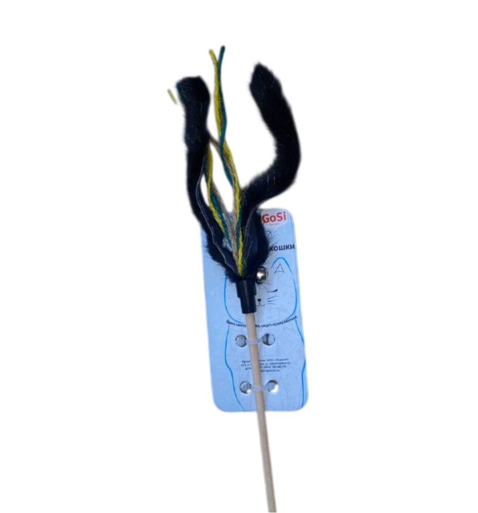 Игрушка Дразнилка для кошек "Джутовые хвостики с норкой" деревянная палочка 50см Gosi
