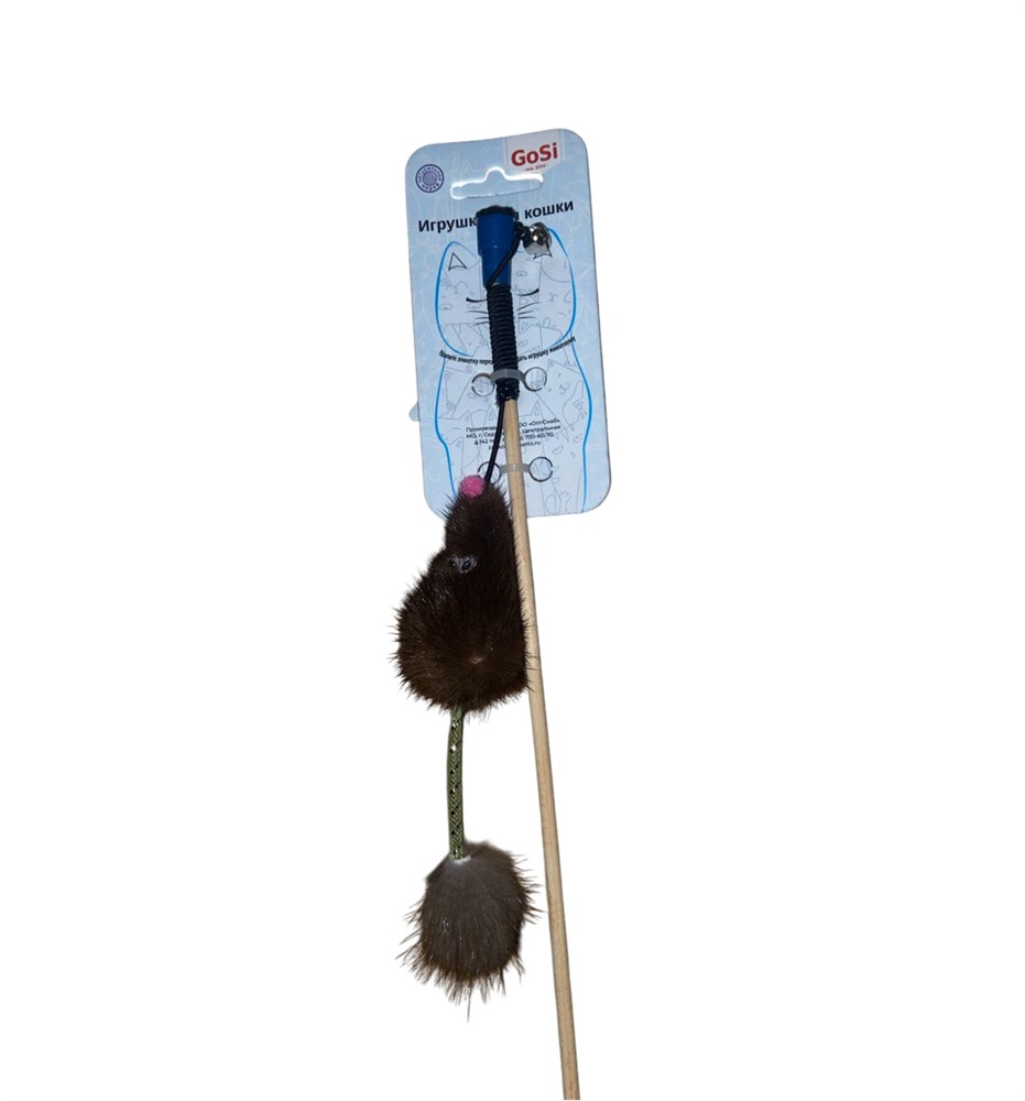 Игрушка Махалка-Удочка "Мышка из натуральной норки,хвост-пружинка" Натур. норка GoSi