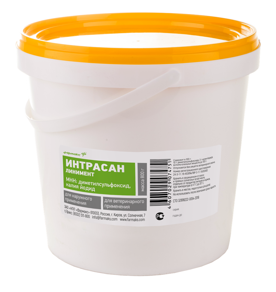 Линимент Интрасан — наружный лекарственный препарат для дойных животных, предназначенный для: лечения субклинического и серозного мастита в качестве монотерапии; повышения эффективности и сокращения длительности комплексной терапии катарального и гнойно-катарального мастита; профилактики тяжелых форм мастита и хронического мастита.