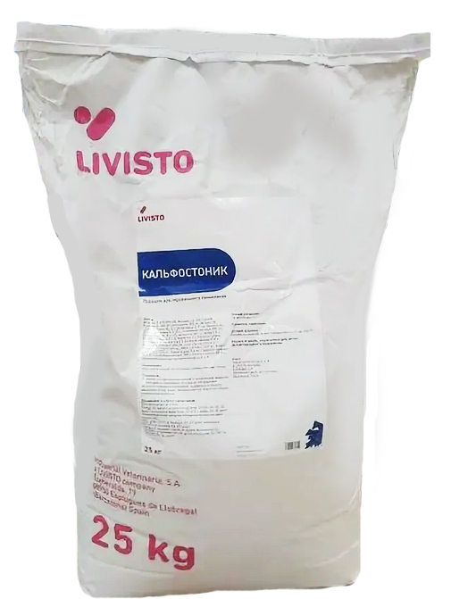 Кальфостоник регулирует оптимальное соотношение витаминов, микро- и макроэлементов, аминокислот, поступающих в организм, способствует повышению сохранности организма в периоды стресса, благотворно влияет на процессы роста и развития. Оказывает благоприятное воздействие на общий тонус, улучшает аппетит и увеличивает продуктивность. СОСТАВ: В 1 кг содержится витамина витамина A 600 000 М.Е.; витамина D3 200 000 М.Е.; витамина B1 100,0 мг; витамина B2 200,0 мг; витамина B6 10,0 мг; витамина B12 1,1 мг; витамина E 75,0 мг; витамина K3 25,0 мг; никотиновой кислоты 1,25 г; пантотената кальция 500,0 мг; холинхлорида 25,0 г; DL-метионина 10,0 г; L-лизина 2,5 г; корня горечавки 5,0 г; карнитин гидрохлорида 10,0 г, а также магний, натрий, железо, марганец, цинк, медь, кобальт. ПРИМЕНЕНИЕ: крупному рогатому скоту, овцам, козам, свиньям, лошадям и птице при: лечении и профилактике острых и хронических заболеваний, потере аппетита, голодании, лечении рахита, замедленного развития животных.
