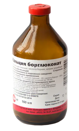 Кальция борглюконат применяют с целью профилактики и лечения животных при послеродовом парезе, спазмофилии, эклампсии, шоковом состоянии, транспортной болезни, рахите, тетании, остеомаляции; задержании последа, предродовом и послеродовом залеживании; также при аллергических заболеваниях (крапивница, сывороточная болезнь); отравления солями магния, токсическое поражение печени.ФАРМАКОЛОГИЧЕСКИЕ СВОЙСТВА. Кальция борглюконат оказывает десенсибилизирующее, антитоксическое и противовоспалительное действие, повышает в крови уровень ионизированного кальция, стимулирует обмен веществ, усиливает сокращение сердечной мышцы. Кальция борглюконат не токсичен для животных, легко усваивается и распределяется в органах и тканях.