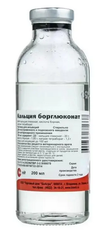 Кальция борглюконат применяют с целью профилактики и лечения животных при послеродовом парезе, спазмофилии, эклампсии, шоковом состоянии, транспортной болезни, рахите, тетании, остеомаляции; задержании последа, предродовом и послеродовом залеживании; также при аллергических заболеваниях (крапивница, сывороточная болезнь); отравления солями магния, токсическое поражение печени.ФАРМАКОЛОГИЧЕСКИЕ СВОЙСТВА. Кальция борглюконат оказывает десенсибилизирующее, антитоксическое и противовоспалительное действие, повышает в крови уровень ионизированного кальция, стимулирует обмен веществ, усиливает сокращение сердечной мышцы. Кальция борглюконат не токсичен для животных, легко усваивается и распределяется в органах и тканях.