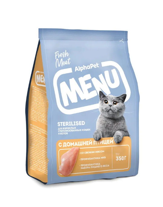 Корм AlphaPet Menu для стерил. кошек и котов с домашней птицей 0,35кг (2789)