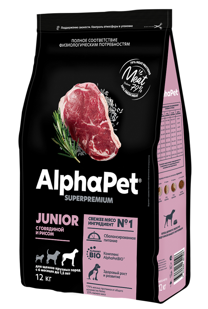 Корм AlphaPet Superpremium сухой средн для щенков,берем и корм собак с говядиной и рисом18кг(1249