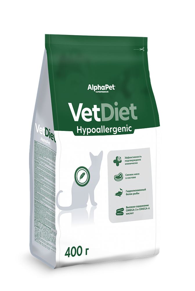 Корм AlphaPet Vet Diet сухой полнор.диет.д/взр.кош.и кот.при пищ.аллер.и неперенос.ингред.0,4кг(5261