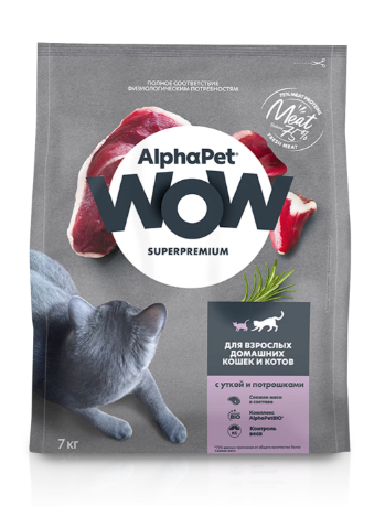 Корм AlphaPet WOW Superpremium сухой полнор-й для кошек и котов с уткой и потрошками 7кг (2079)