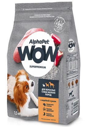 Корм AlphaPet WOW Superpremium сухой полнор-й для собак мелких пород с индейкой и рисом 1,5кг(1058)