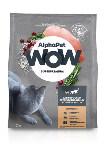Корм AlphaPet WOW Superpremium сухой полнор-й для стерил. кошек и котов с цыпленком 7кг(2062)