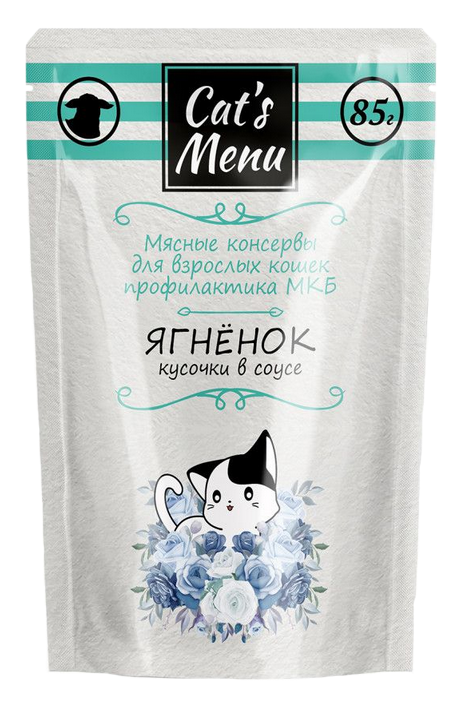 Корм Cat`s Menu пауч для взрослых кошек с ягненком кусочки в соусе профилактика МКБ 1х30пауч 85г