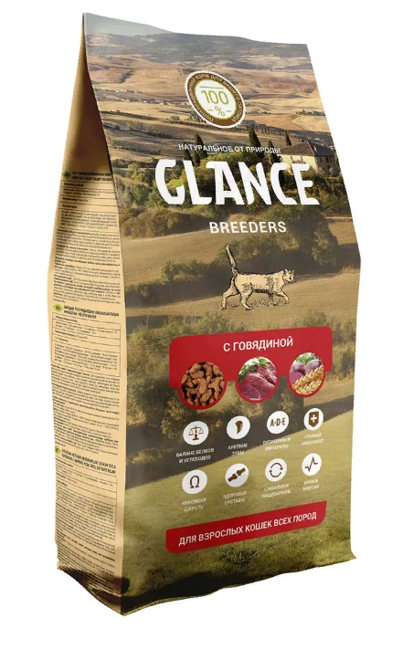 Корм Glance сухой для кошек с говядиной, 10кг (2832)