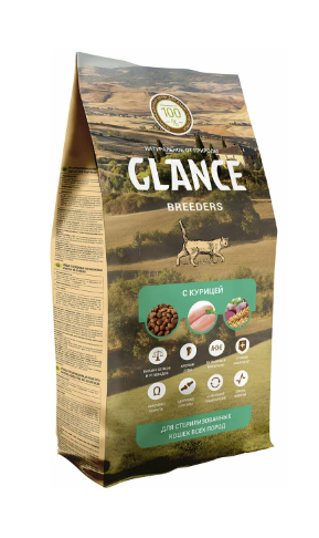 Корм Glance сухой для стерилизованных кошек с курицей, 10кг (2849)
