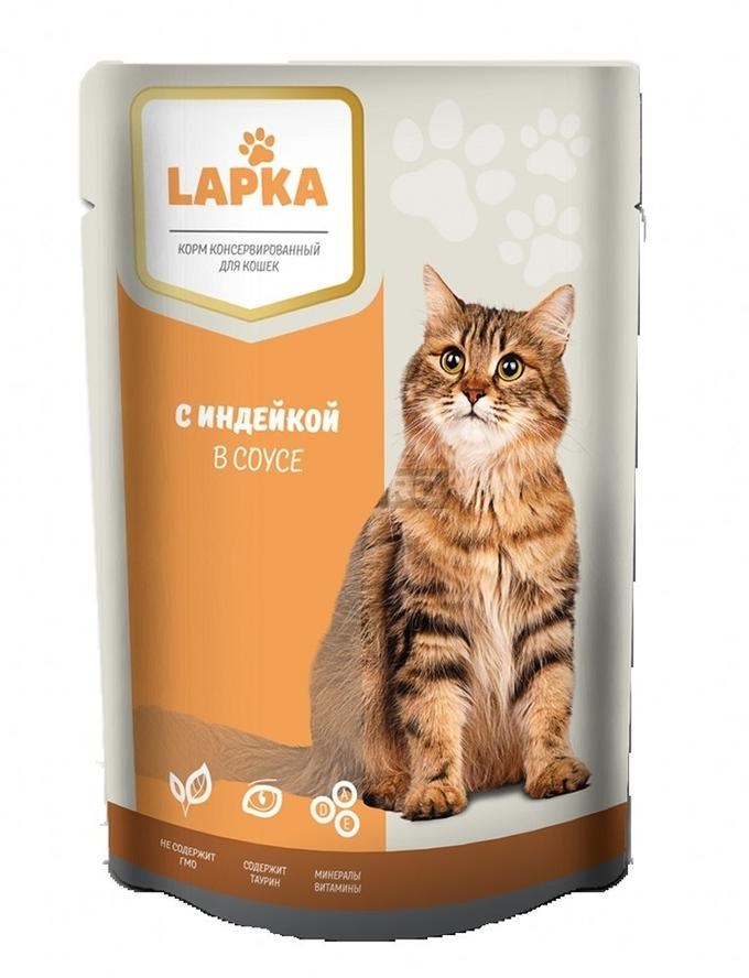 Корм ЛАПКА пауч для кошек, с индейкой в соусе, 85гр (1705)