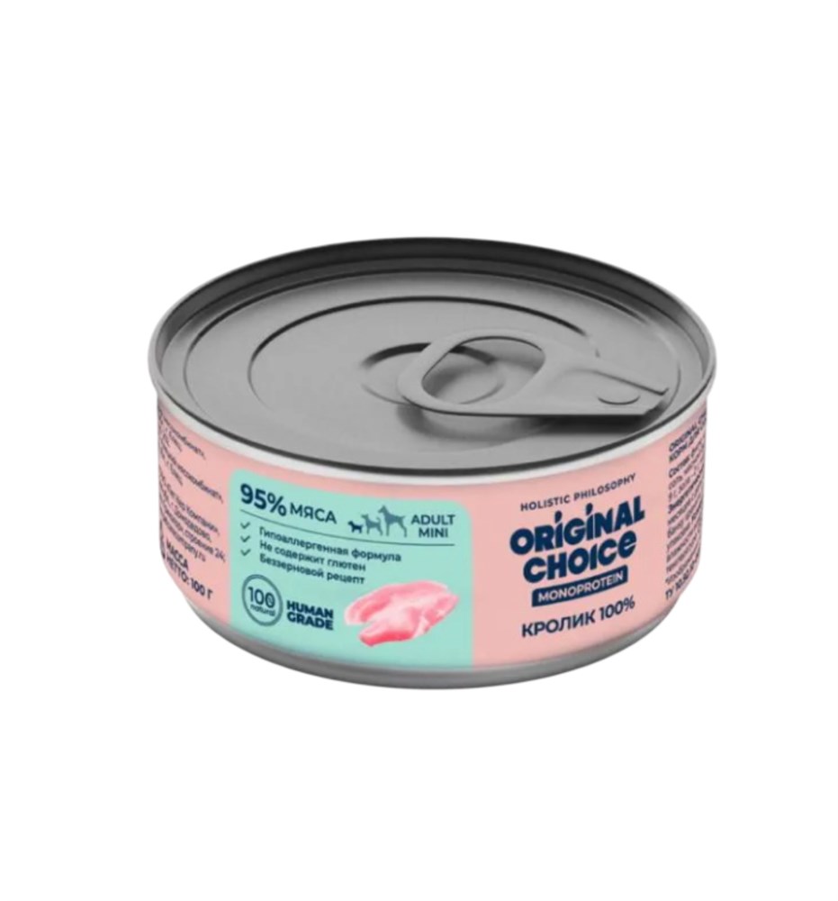 Корм ORIGINAL CHOICE MONOPROTEIN ADULT MINI консервы для собак мелких пород кролик 100г (3490)
