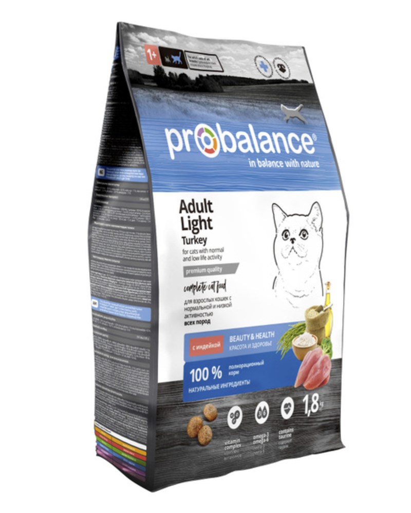 Корм ProBalance Adult Light Turkey сухой для взрослых кошек всех пород с индейкой, 1,8кг (3280)