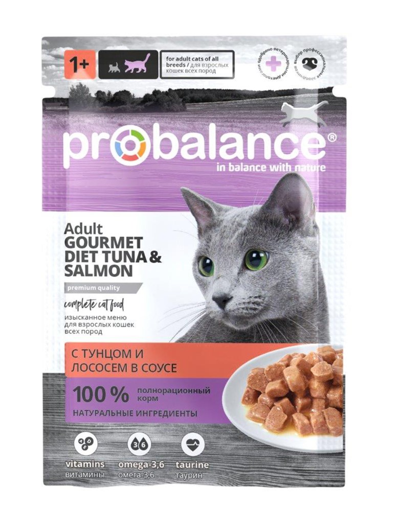Корм ProBalance пауч Gourmet Diet для кошек с тунцом и лососем в соусе, 85гр (3358)
