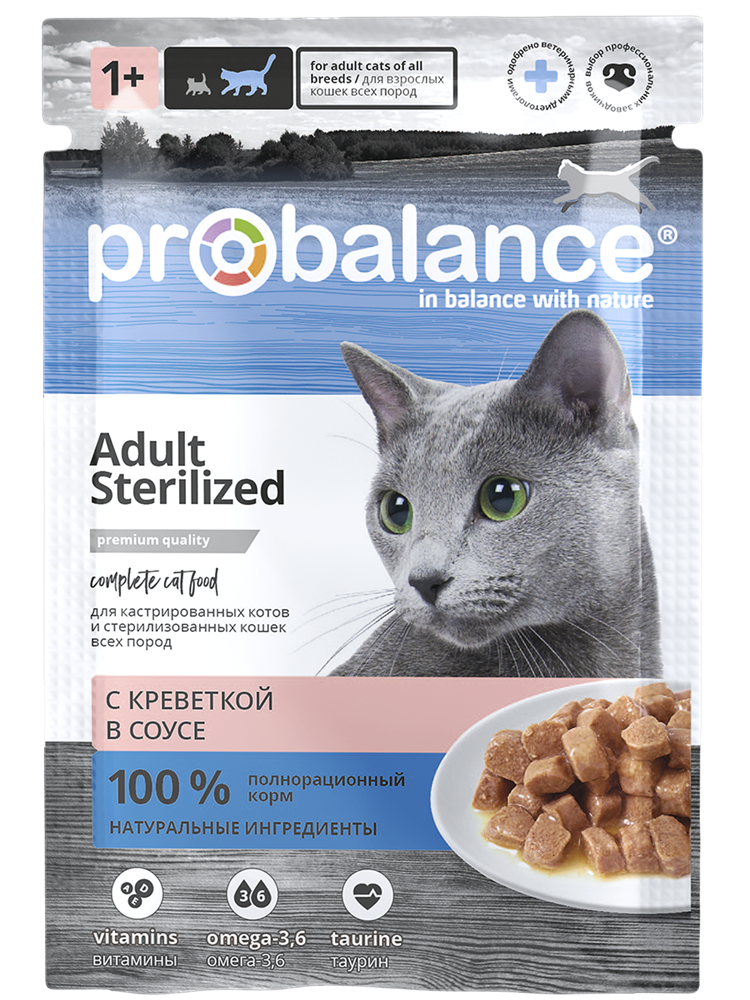 Корм ProBalance Sterilized пауч для стерилиз. кошек/кастр. котов с креветкой 85гр (3341)