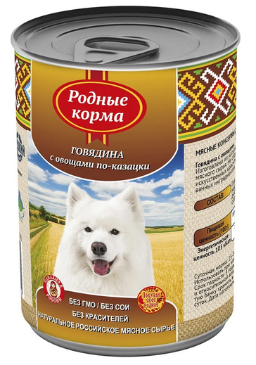 Корм РОДНЫЕ КОРМА Говядина с овощами по казацки конс. для собак 970г (9502)