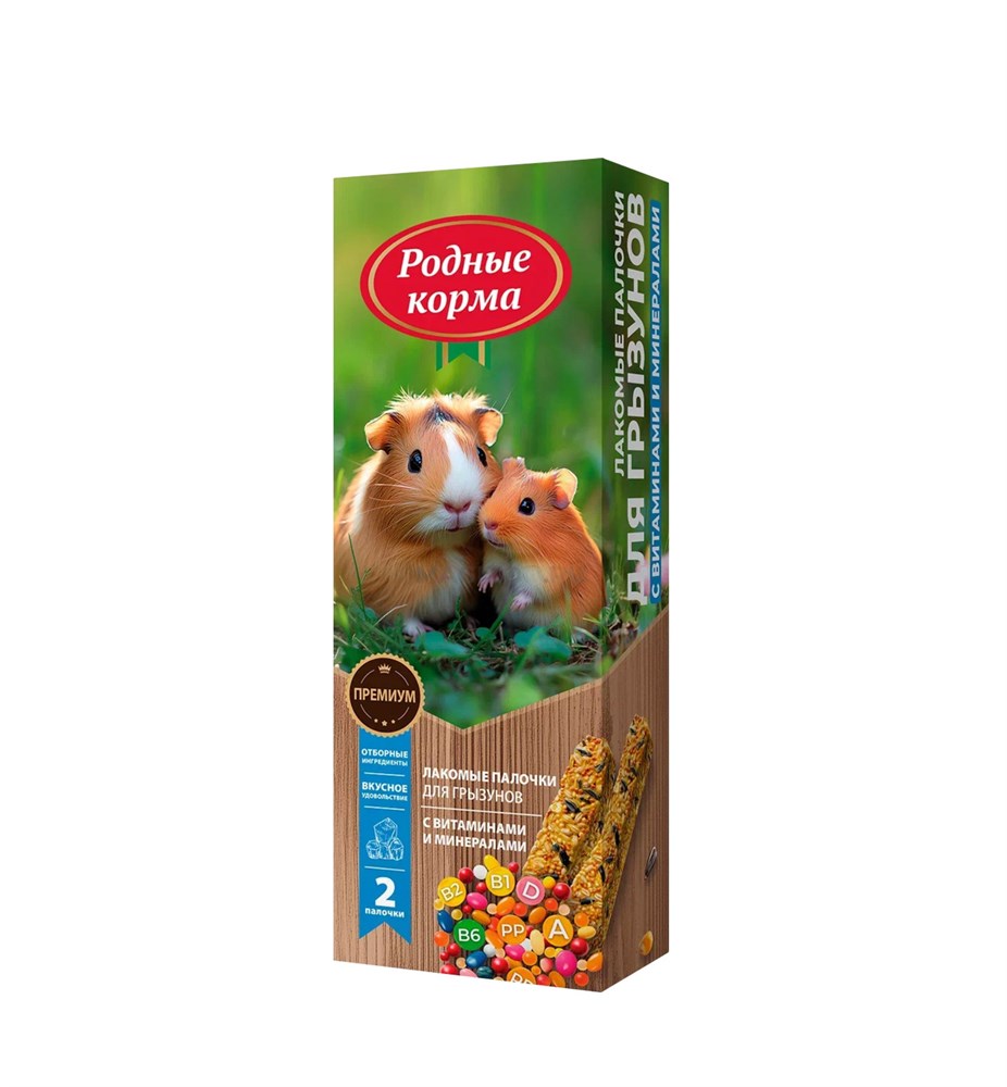 Корм РОДНЫЕ КОРМА Зерновая палочка для грызунов с витаминами и минералами 2шт. х 45гр. 1х18
