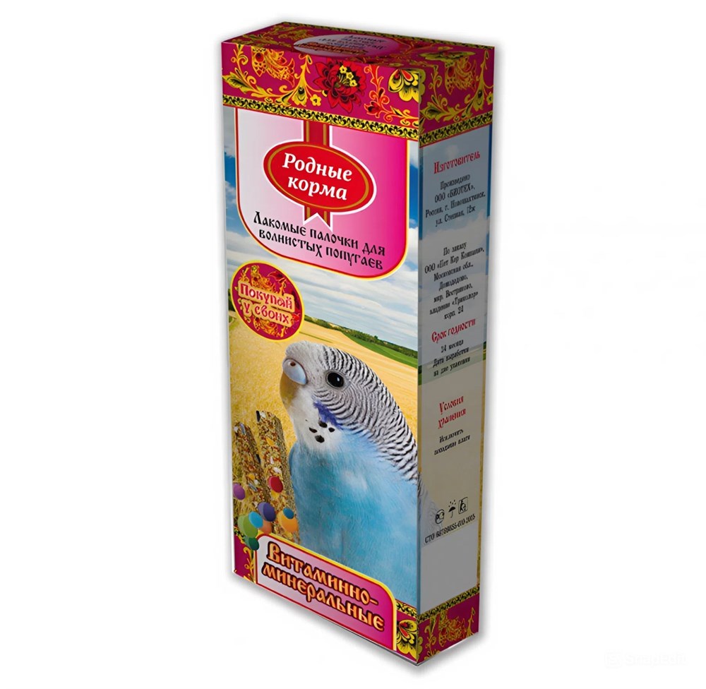 Корм РОДНЫЕ КОРМА Зерновая палочка для попугаев с витаминами и минералами 2шт. х 45гр. 1х18
