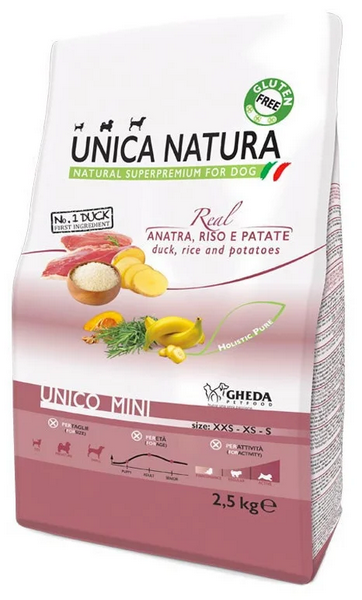 Корм Unica Natura д/соб.мел.пор. утка,рис,карт 2,5кг (4573)