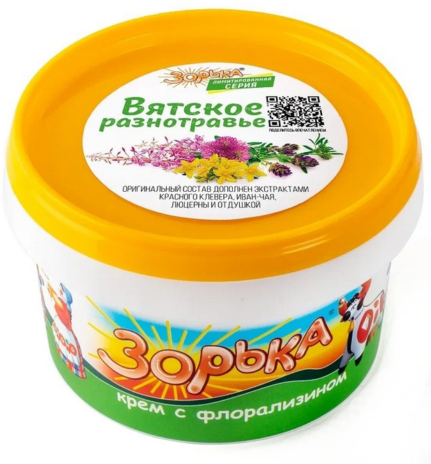 В состав крема «Зорька» Вятское разнотравье» с флорализином включен фитокомплекс из зверобоя, красного клевера, иван-чая и люцерны, придающий коже бархатистость и гладкость.Применение крема решает проблему с обезвоживанием кожи в неблагополучных погодных условиях и в условиях экстремальных воздействий. Крем обладает свежим цветочным ароматом.Крем Зорька Вятское разнотравье предназначен для ежедневного ухода за кожей сосков и вымени дойных животных.