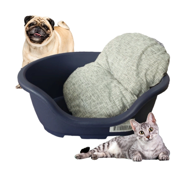 Лежанка "Чистый котик" с подушкой для дом. животных, пластик, с вентиляцией син/сер (POLA#4K)