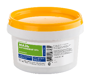 Мазь ихтиоловая 10% – лекарственный препарат в форме мази, содержащий в 100 г в качестве действующего вещества 10 г ихтиола, а в качестве вспомогательного вещества 90 г вазелина медицинского или ветеринарного.