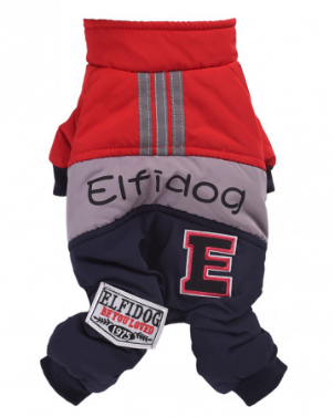 ОДЕЖДА Комбинезон трехцветный, верх красный, надпись "Elfidog" ХS-21см (Хм03ХС)
