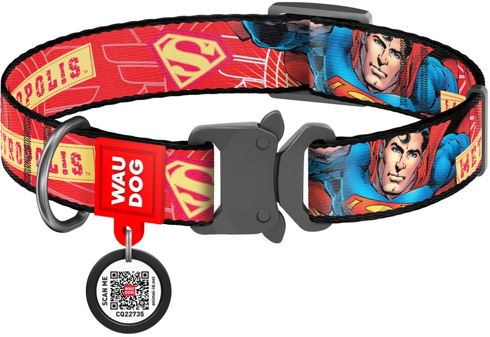 Ошейник WAUDOG Nylon с QR паспортом рис."Супермен" мет. пряж, Ш 15мм, дл23-35см,(0015-2005) "COLLAR"