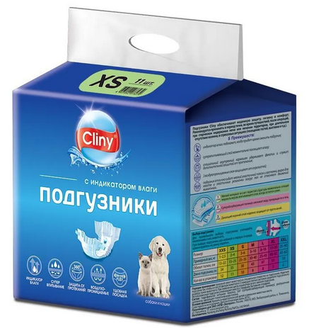 Подгузники для животных "Cliny" XS (2-4кг.) 11шт. К201