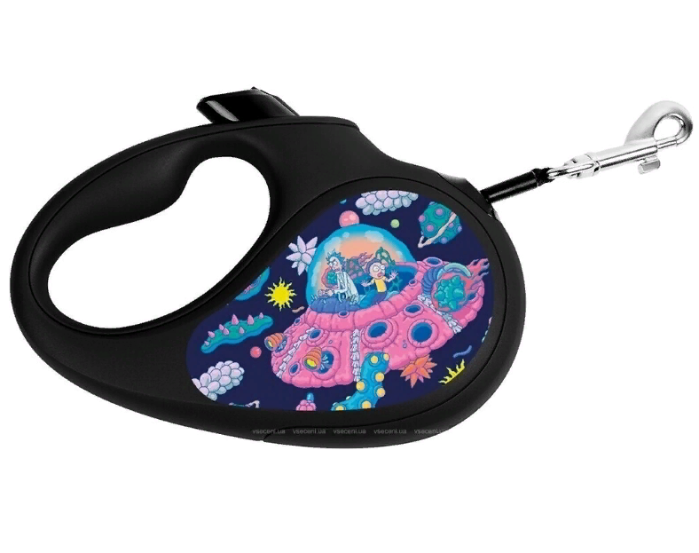 Поводок-рулетка WAUDOG рис."Рик и Морти 1", XS, 12кг,3м, светоот. лента черн (8123-0280-01) "COLLAR"