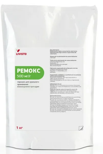 относящееся к беталактамной группе. Это полусинтетический пенициллин, чувствительный к действию пенициллиназы. ПРИМЕНЕНИЕ: назначают с лечебной целью свиньям и с лечебно- профилактической целью сельскохозяйственной птице при колибактериозе и сальмонеллезе, а также при других бактериальных инфекциях желудочно-кишечного и респираторного трактов, вызванных чувствительными к амоксициллину возбудителями.