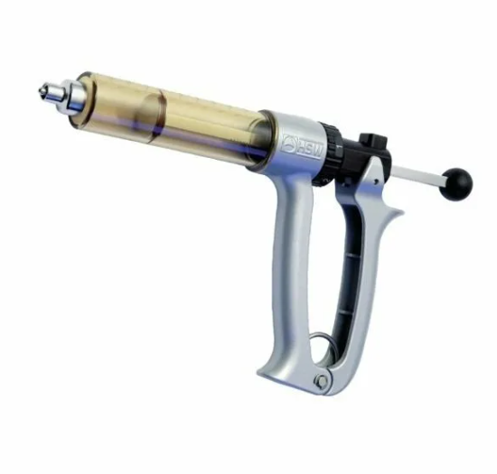 Шприц-вакцинатор предназначен для массовой и поголовной вакцинации на фермерском хозяйстве. Объем 25 мл — шаг дозировки 0,5–2,5 мл. Имеет ряд достоинств и преимуществ: инновационная и эргономичная конструкция; очень удобен в обращении благодаря рукояткам из высокопрочного литого алюминия; прочный пластмассовый цилиндр с металлическим наконечником для канюли; устойчивый к воздействию всех известных медикаментов; стойкость к УФ-излучению; максимальная точность дозирования с допуском < 1%; простое дозирование с помощью дозировочного колесика 0,5–2,5 мл (25 мл) или 1–5 мл (50 мл); удобство обслуживания благодаря простому демонтажу; совместимость с биологическими веществами;