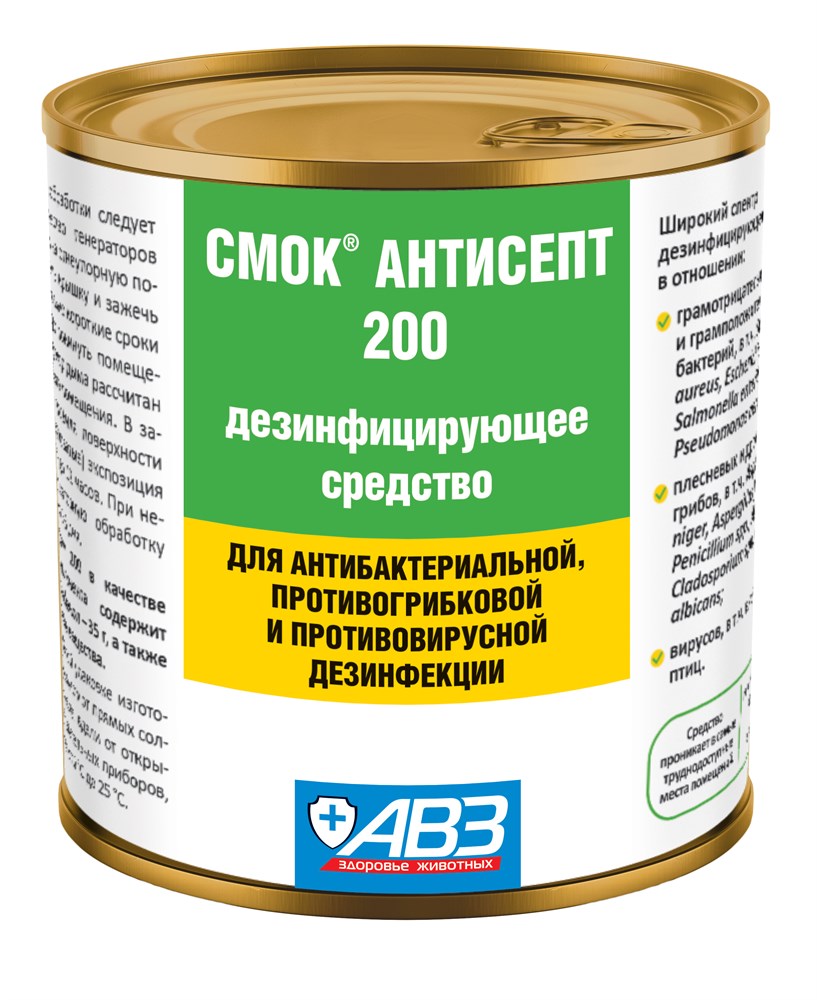 СМОК® антисепт применяют для антибактериальной, противогрибковой и противовирусной дезинфекции животноводческих и птицеводческих помещений, складов и хранилищ, транспортных средств, инвентаря для ухода за животными, емкостей для хранения, раздачи и транспортировки кормов , клеток и оборудования, инкубаторов и выводных шкафов , кормокухонь , боен и других объектов ветеринарного надзора.
