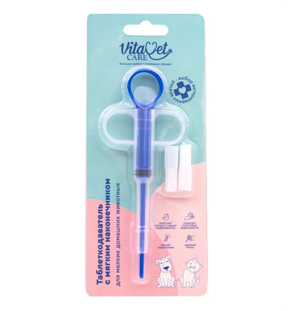 Таблеткодаватель (пиллер) VitaVet CARE с мягким наконечником для мелких домашних животных