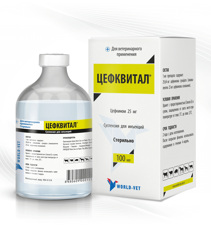 ПРЕИМУЩЕСТВА: Небольшие ограничения по мясу и молоку позволяют восстановить продуктивность на предприятии в кратчайшие сроки. Бактерицидный эффект в отношении широкого ряда грамположительных и грамотрицательных бактерий. Максимальная концентрация препарата в сыворотке крови достигается за 1,5-2 часа, что обеспечивает быстрое терапевтическое действие.Подтвержденная эффективность в лечении инфекций дыхательных путей и маститов. СОСТАВ: Цефкином 25 мг. ПРИМЕНЕНИЕ: крупному рогатому скоту, овцам, свиньям, лошадям, собакам и кошкам для лечения инфекций дыхательных путей