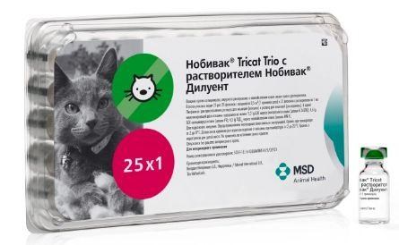 Сухая живая вакцина Нобивак Tricat Trio получена из культуральной жидкости перевиваемой линии клеток FEF, инфицированных аттенуированными (ослабленными) штаммами вирусов. В 1 мл вакцина содержит 5,2 lg БОЕ единиц вируса ринотрахеита штамма G 2620A, 4,6 lg БОЕ единиц калицивируса кошек штамма F9 и 4,3 lg ТЦД50 единиц вируса панлейкопении кошек штамма MW-1, а также стабилизаторы.