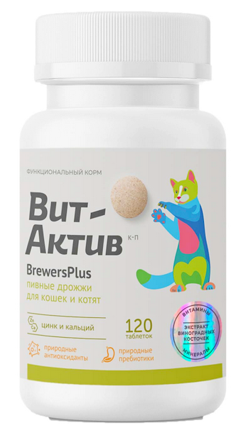 Вит-Актив BrewersPlus К-П Пивные дрожжи для кошек и котят, 120 таб