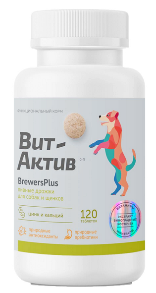 Вит-Актив BrewersPlus С-П Пивные дрожжи для собак и щенков, 120 таб